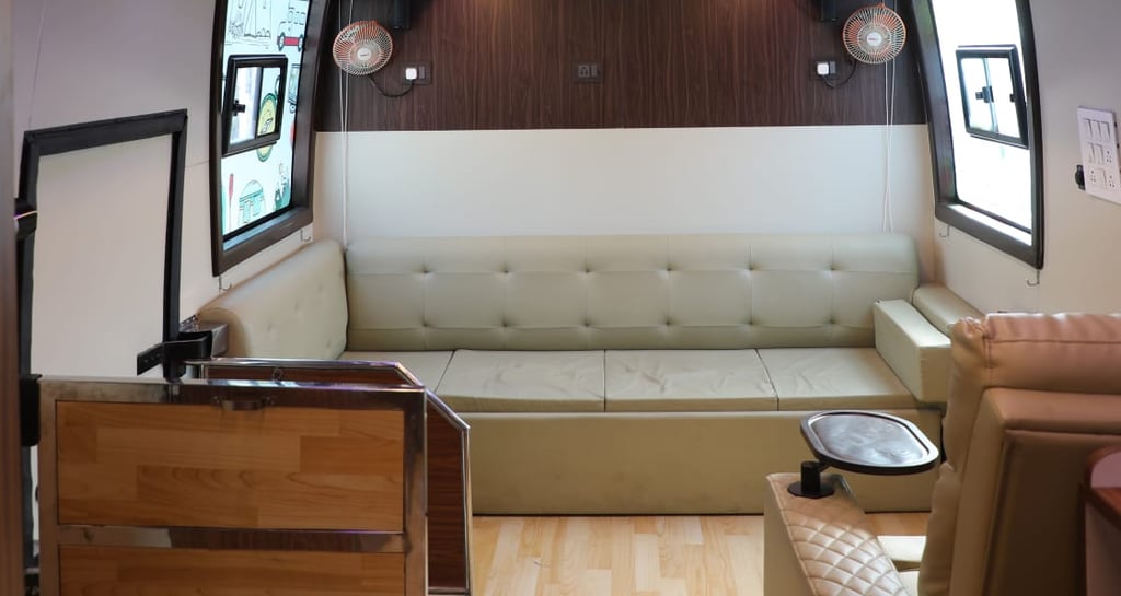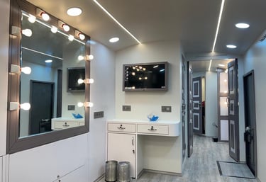 Welcome to the premier Vanity Van on Rent service, where luxury meets convenience for film shoots, celebrity travel, weddings, corporate events, and outstation tours. Our fully equipped vanity vans feature modern amenities such as comfortable reclining seats, private washrooms, kitchenettes, sofa beds, makeup mirrors, and entertainment systems, ensuring an unparalleled mobile living and working experience. Whether you need a 5-8 seater luxury caravan or a fully furnished mobile vanity van, our rentals provide privacy, comfort, and style tailored to your unique needs. Book with us for trusted, high-quality vanity van rentals in Delhi and North India, designed to make your journeys and events seamless and spectacular.